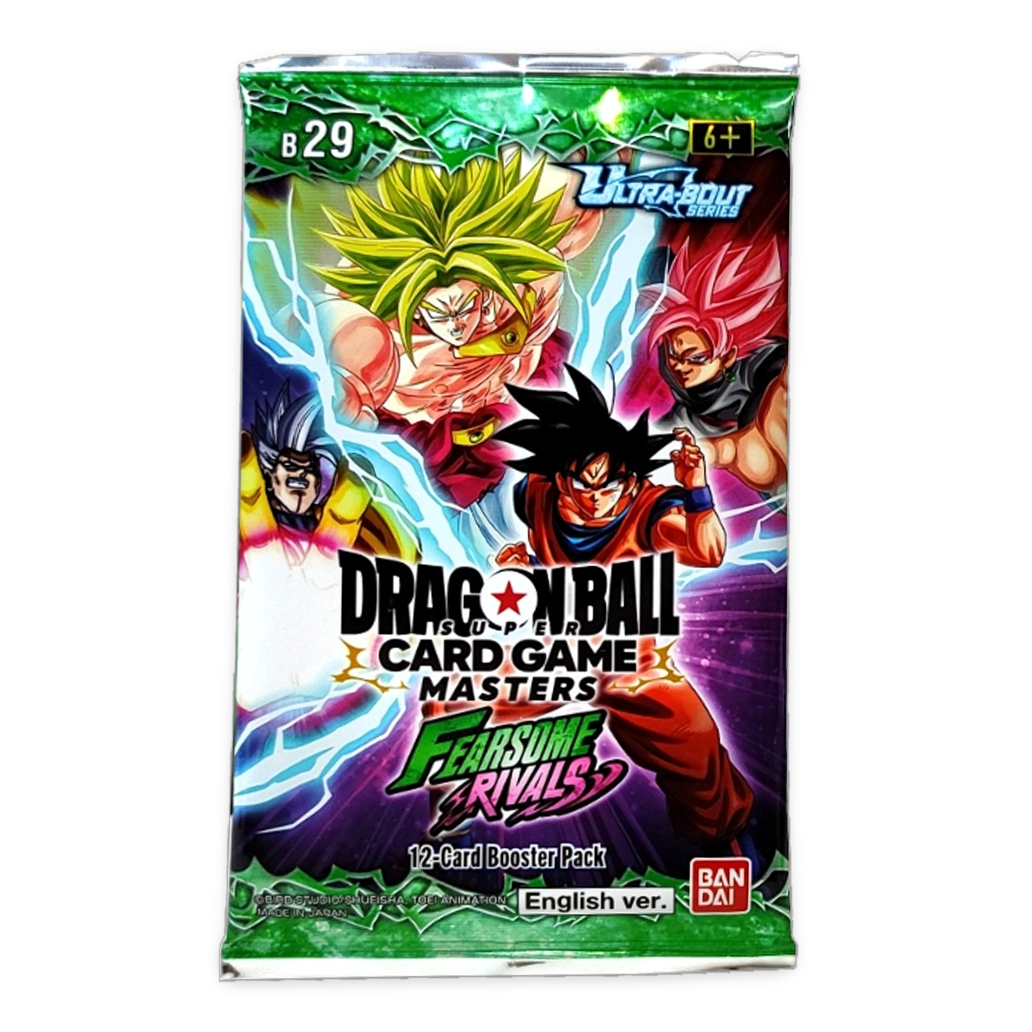 Enter the battlefield with the Ultra Bout Series – Fearsome Rivals (B29), the latest booster set for the Dragon Ball Super Card Game: Masters. This expansion brings iconic rivalries to the forefront, introducing powerful new Leaders, competitive archetypes, and highly collectible premium rarities.
